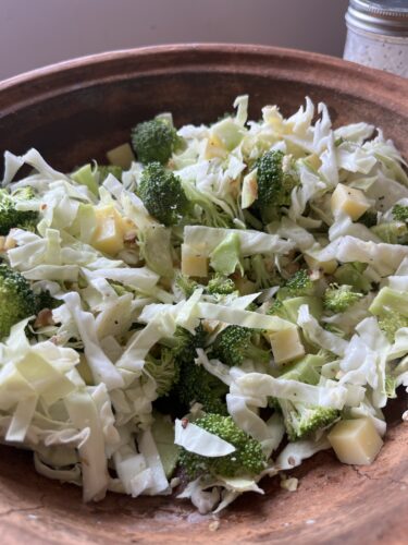 This broccoli salad nestles beautifully in the Large Pan. The earthy tones of the pan contrast perfectly with the greens and creamy dressing, offering not just function but presentation worthy of your best gatherings.